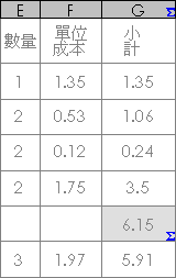 您可以移入有之前欄儲存格值總和的表格儲存格。例如,您可以在 BOM 中顯示一組項目的成本的小計。