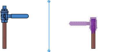此範例會在您將閥次組合件鏡射到第二個管路時比較零組件方位選項。
