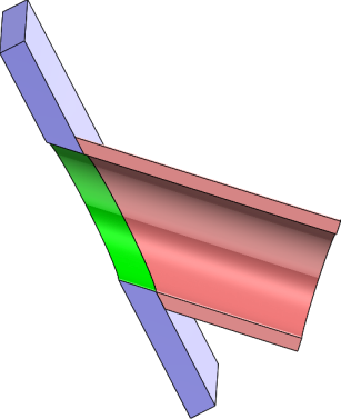 Consider that you have a slanted sheet metal part or body and a tube that needs to be welded on top of the part. This example shows a section view for illustration.