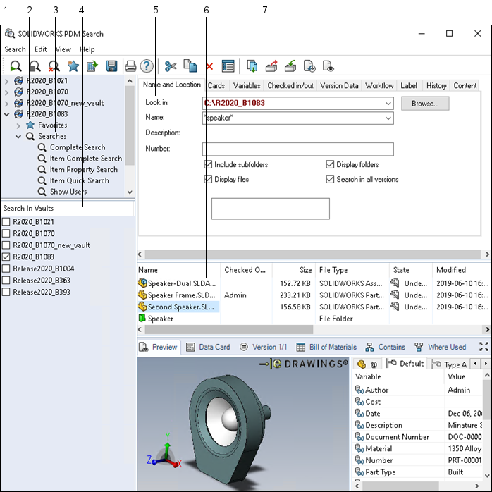 La recherche SOLIDWORKS PDM est un outil qui vous permet de rechercher des fichiers et des dossiers, ainsi que des métadonnées comme les utilisateurs ou les articles, dans plusieurs coffres-forts.