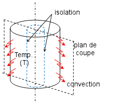 La figure suivante illustre un autre exemple d'un cylindre creux dont la surface intérieure est isolée et la surface extérieure exposée à un environnement de convection.