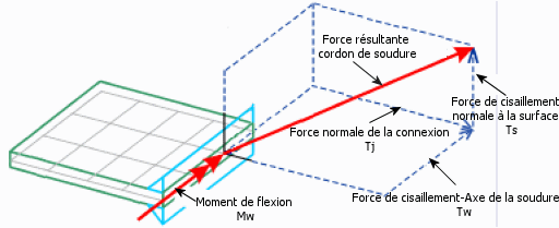 Un moment (Mw) agissant autour de l'axe de soudure local, Uw. Unités indiquées en unité de moment/unité de longueur de soudure.