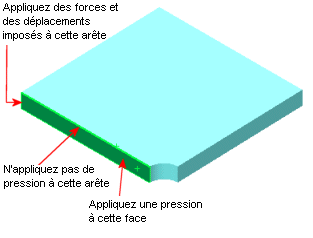 Les tôles (d'épaisseur uniforme) et géométries de surface sont automatiquement maillées avec des coques. Pour des tôles métalliques maillées par des coques, vous pouvez appliquer les déplacements imposés comme sur des corps volumiques.