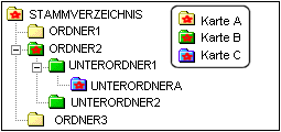 Ordnerkarten: Wenn Sie eine neue Ordnerkarte in einem Ordner speichern, in dem bereits eine andere Ordnerkarte gespeichert ist, wird die neue Ordnerkarte aktiv. Um eine nicht verwendete Ordnerkarte zu aktivieren, öffnen Sie die Karte und speichern sie erneut.