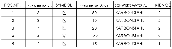 Sie können Schweißnahttabellen in Zeichnungen einfügen.