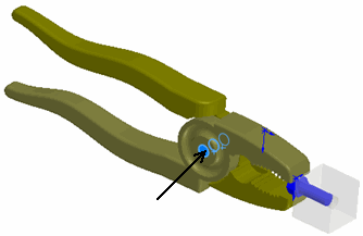 ピンを定義して、 2 つの回転パーツを接続します。 1 つのピン結合が 4 つの円筒面に添付されます。 |