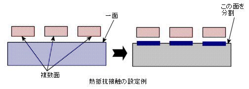 大きな面といくつかの小さな面の間に異なる熱抵抗を指定するには、まず大きな面を小さな面に分割してから、それぞれのペアに対して熱接触抵抗を指定します。