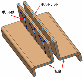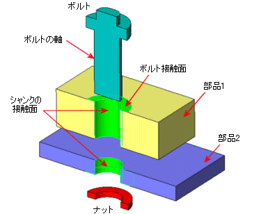 ボルト(Bolt) は 2 つの構成部品、複数の構成部品、または構成部品と地面をつなぐことができます。 固体、シェル、および板金ボディの混在スタックを通してボルトの定義が可能です。 同じ構成部品のエンティティを選択することにより、ボルトを定義することもできます。