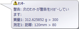 センサーは、部品やアセンブリの特定のプロパティを監視し、指定された制限値から値が外れると警告を表示します。
