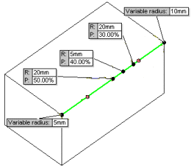 可変半径値を持つフィレットを作成します。フィレットの定義にコントロール点を使用します。