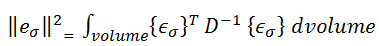 Dla każdego elementu błąd naprężenia εσ w każdym węźle pomiędzy naprężeniem elementu i uśrednione naprężenie węzłowe są przybliżane następująco: