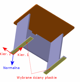 Wybrane ściany płaskie (w kolorze żółtym) mogą przesuwać się wzdłuż Kierunku 1 i Kierunku 2 wybranych ścian i są umocowane w kierunku Normalnym.