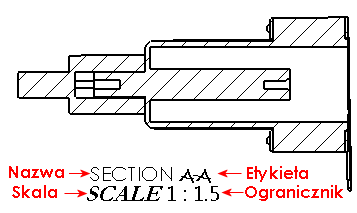 Wyświetla etykietę widoku z nazwą i etykietą ponad skalą. |