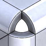 Tworzy zamknięty, sferyczny narożnik bez żadnych wycięć. Sfera jest oparta na istniejących parametrach arkusza blachy.
