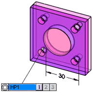 Você pode aplicar restrições entre padrões de furos*, entalhes ou ranhuras.