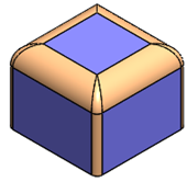 Redondear esquinas Crea redondeos de tamaño constante con esquinas redondas. Seleccione al menos dos aristas adyacentes para redondear. Un redondeo con esquina redonda tiene una transición suave entre las aristas, eliminando la unión viva donde se encuentran las dos aristas.