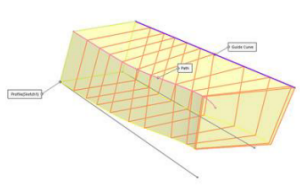 Ejemplo de Seguir trayecto y Seguir primera curva guía (dos curvas guía seleccionadas) |