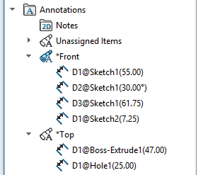 Montajlarda ve parçalarda detaylandırmalar, FeatureManager® tasarım ağacındaki Detaylandırmalar