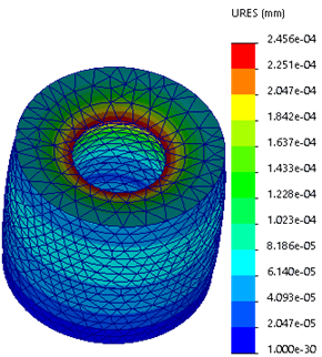 Resimde, 1.000 N ön gerilim yüküne sahip bir cıvatayla bağlı iki silindirik bileşen gösterilmektedir. İki bileşen arasında girmesiz temas vardır.
