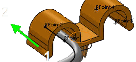 线路在您将线夹拖动到线路设计装配体中时沿 RPoint1 和 RPoint2 之间的轴生成。 因此,如果您的线夹包括一个以上线路点,注意根据线路设计意图定义头两个线路点。