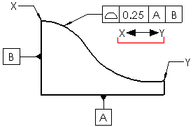 您可以在基本單位上套用平坦和直的公差。 您可以在公差值之後加入正斜線 (/) 再輸入每單位區域或每單位長度準則來套用基本單位公差。