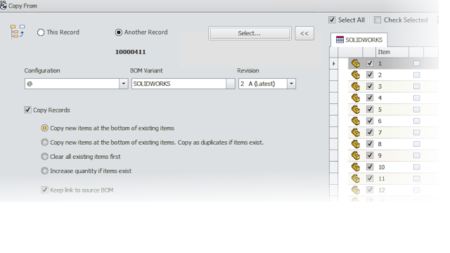 按一下新增,然後使用新增對話方塊來將新項目新增至 BOM。 如果您有權限,可以從多個物件中選擇記錄。 |
