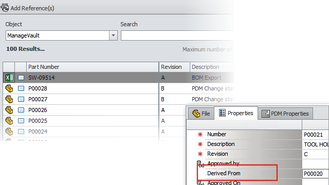 SOLIDWORKS Manage 使用者介面經過許多改善以提升可用性,其中包含新選項和控制,以及現有控制的新位置。