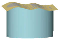 面はサーフェスで置き換えられ、元のボディに隣接する面はトリム、またはフィットするよう延長されます。新規の面は、元のボディの隣接面にフィットするようトリムされます。