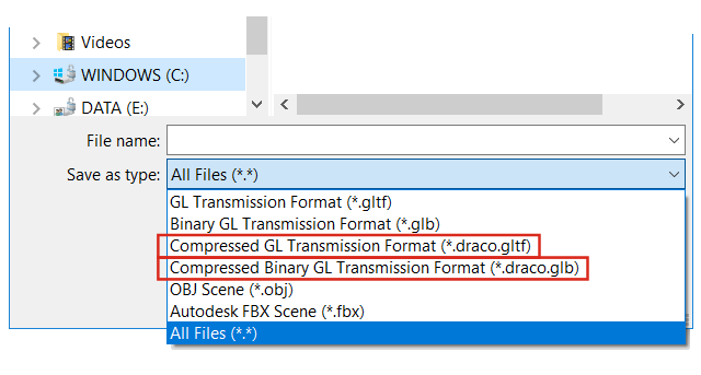- 圧縮バイナリ GL 転送形式(*.draco.glb)(Compressed Binary GL Transmission Format (*.draco.glb))