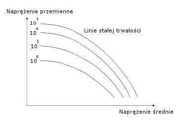 Wpływ naprężeń średnich na liczbę cykli, która powoduje zniszczenie przedstawiony został na poniższym diagramie, zwanym diagramem Haigha.