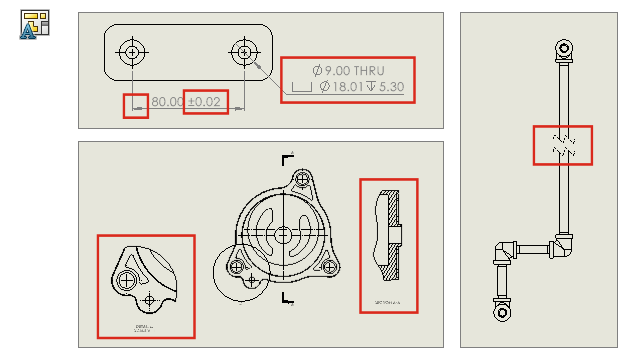 W trybie opisywania szczegółów można tworzyć i modyfikować widoki Przerwany, Obcięty i Szczegółowy. Można również dodawać do widoków wymiary i adnotacje.