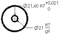 Dimensão de eixo (inferior), Ajuste com tolerância com Folga e tolerância bilateral calculada automaticamente.
