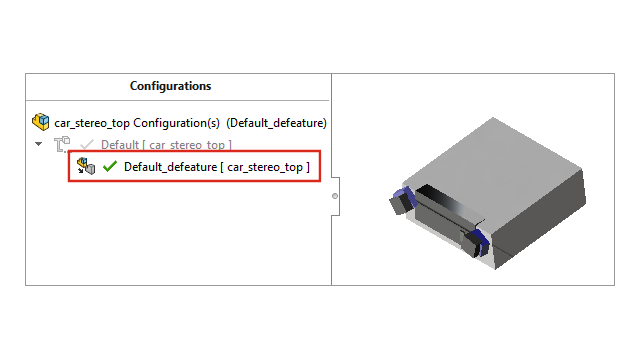 Para salvar uma montagem defeatured em uma configuração, na página Defeature – Defeature concluído, clique em Criar uma nova configuração e selecione Incluir geometria de referência de nível superior.