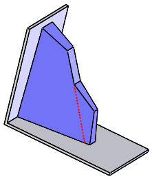 Referans konturunun modelin içinden düz bir çizgide uzatıldığını düşünün. Sonraki Referans okunun yönünde (referans konturu çizgisinin soluna) dışa doğru draft uygulanır. Draft, kalınlaştırılmış referans konturuyla oluşturulan yüze dik uygulanır.