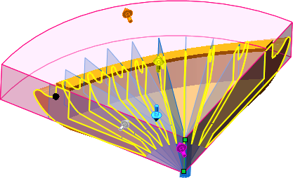Doğrusal ve Nokta Objelerini Kullanarak Standart SOLIDWORKS BREP Gövdelerini Dilimleme Doğrusal ve nokta objelerini kullanarak standart SOLIDWORKS BREP gövdelerini dilimlemek için: Standart bir SOLIDWORKS BREP gövdesi modeli açın. Grafik alanında, Ctrl tuşunu basılı tutarken doğrusal objeyi ve nokta objesini seçin. Ekle > Dilimleme öğesine tıklayın. PropertyManager'da seçenekleri belirleyin. Tüm modeli sınırlandırıcı kutuyla kapatmak için turuncu tutamacı sürükleyin. Sınırlandırıcı kutunun modelin tamamını kapsadığından emin olmak için Görünüm Oryantasyonu (Heads-up Görünüm) kullanın. PropertyManager'da, dilimleme düzlemine göre her bir kesiti önizlemek için Dilimleri önizle (daha yavaş) öğesini seçin. öğesine tıklayın. Ana başlıkDilimleme Aracı Düzlemsel Objeler Kullanarak Mesh BREP Gövdelerini Dilimleme Dilimleme PropertyManager'ı