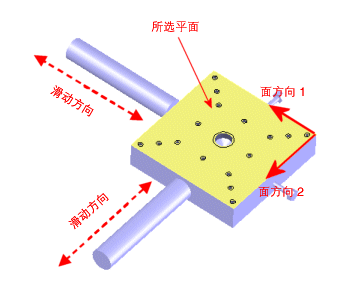 在平面上 只有当所有选定的面都是平面时,才能使用此选项。每个面都可以在不同的基准面中。每个面均在相对于其自己的方向(方向 1、方向 2 和法向)上受约束。 属性 值 实体网格的可能 DOF 3 次平移 外壳网格的可能 DOF 3 次平移和 3 次旋转 桁架的可能自由度 3 次平移 3D 符号 平移 旋转 可选实体 仅限平面 平移 沿面方向 1 沿面方向 2 垂直于面 旋转(仅限外壳) 绕面方向 1 绕面方向 2 绕垂直于面 范例 所选平面(以黄色显示)只能沿由红色虚线箭头所示的方向(例如面的方向 1)滑动。将其它两个方向(方向 2 和法向)设定为零可实现此情况。 所选平面(以黄色显示)可以沿面方向 1 和面方向 2 滑动。将法向运动设置为零可实现此情况。 以上所示的桌子可以自由地在地面(红色虚线箭头所示方向)运动,但不能做法向运动(蓝色实线箭头所示方向)。 所选平面(以黄色显示)可以自由地沿所选面的方向 1和方向 2 滑动,但不能在法向方向滑动。 内部滑杆可自由地沿虚线箭头所示方向滑动。 使用在平面上约束类型可指定沿面方向 2 和面法向方向的位移为零。 父主题夹具