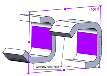 在图例中,两个高亮显示的面相对于高亮显示的基准面对称。 由于只有高亮显示的面是对称的,因此两个组件彼此相对颠倒。 组件的其他面不对称。