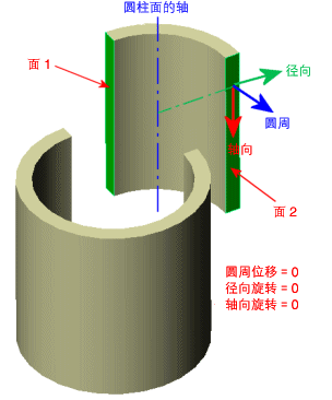此模型为轴对称。 可以对模型的一半或四分之一进行分析。 对称 约束自动对所选面应用平移和旋转条件。
