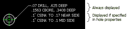 • Nastavení se určují v dialogovém okně Toolbox - popisy děr.