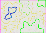 Barevné rozlišení topografických čar Barvy v topografické mapě mají tyto významy: Žlutá Vybraná čára Zelená Trasovaná uzavřená čára Červené tečky Neuzavřené čáry Modrá Uzavřená čára s přiřazenou nadmořskou výškou Purpurová Hranice mapové oblasti Nadřazené témaTopo Tracer