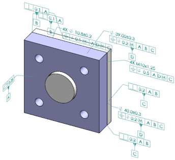 The software uses the annotations from the source component to create the annotations on the target component. It uses the fixed and floating fastener formulas outlined in ASME Y14.5 to compute the tolerances.