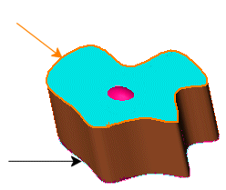 La partie en rouge est la protubérance du remplissage de surface partant du profil inférieur vers la face supérieure (bleue).