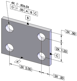 Utilisez l'outil Tolérance géométrique de DimXpert pour appliquer des tolérances géométriques aux fonctions DimXpert.