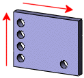 Définit la direction de la répétition Direction 2. Sélectionnez une arête linéaire, une ligne, un axe, une cote, des faces et des surfaces planes, des faces et des surfaces coniques, des arêtes circulaires et des plans de référence. |