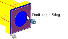 Création de plusieurs dépouilles à l'aide de DraftXpert Pour créer plusieurs dépouilles et effectuer une analyse de dépouille à l'aide de l'onglet Ajouter de DraftXpert : Dans le PropertyManager DraftXpert, cliquez sur l'onglet Ajouter. Sous Objets à dépouiller: Définissez l'Angle de dépouille . Dans cet exemple, réglez-le sur 3.00deg. Sélectionnez un Plan neutre dans la zone graphique. Dans cet exemple, sélectionnez la face plane rouge sur le dessus du cylindre. La flèche de la Direction d'ouverture pointe vers le haut. Sélectionnez les Faces à dépouiller . Dans cet exemple, sélectionnez la face cylindrique de couleur cyan. Cliquez sur Appliquer pour créer la dépouille. Sous Analyse de la dépouille, sélectionnez Couleurs auto. pour activer l'Analyse de la dépouille. La face que vous venez de dépouiller affiche la couleur d'Analyse de la dépouille correspondant à 3 degrés de dépouille, alors que l'intérieur du cylindre est jaune, indiquant l'absence de dépouille. Le retour d'information du pointeur indique l'angle de dépouille lorsque vous déplacez la souris sur la face dépouillée. Désactivez Couleurs auto. Sous Faces à dépouiller, sélectionnez une autre face comme Plan neutre. Dans cet exemple, sélectionnez la face plane rouge sur la partie avant carrée du modèle. Sélectionnez Couleurs auto. La partie intérieure circulaire du cylindre horizontal est jaune, ce qui indique l'absence de dépouille. Sélectionnez la partie intérieure circulaire des Faces à dépouiller , puis cliquez sur Appliquer pour créer la dépouille. La couleur de la partie circulaire intérieure est mise à jour et indique une dépouille de 3 degrés. Le retour d'information du pointeur confirme la valeur de l'angle de dépouille. Sujet parentDraftXpert Modification de la dépouille à l'aide de DraftXpert Le PropertyManager DraftXpert - Ajouter Le PropertyManager DraftXpert - Modifier