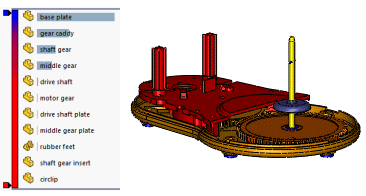 Baugruppenvisualisierung bietet verschiedene Möglichkeiten zum Anzeigen und Sortieren der Komponenten einer Baugruppe in einer Liste und im Grafikbereich.