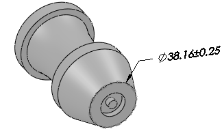 In „DimXpert Größenbemaßung“ unterstützte Funktionen Feature Beispiel und Bemaßungsart Aufsatz Durchmesser Fase Winkel-Abstand Abstand-Abstand DimXpert bemaßt SOLIDWORKS Fasen mit der Methode, die zu ihrer Definition verwendet wurde. Fasen, die anhand ihrer Topologie erkannt werden, werden mit Abstand-Abstand bemaßt. Kegel Eine Reihe externer oder interner Kegel muss denselben eingeschlossenen Winkel haben oder auf einer gemeinsamen Ebene liegen. Zylinder Radius Feature Beispiel und Bemaßungsart Verrundung Radius Kreis überschneiden Ein Kreis, der durch den Schnitt eines Kegels mit einer Ebene entsteht. Der Kegel muss senkrecht zur Ebene sein und kann nicht von einer Ellipse erstellt werden. Der Kegel und die Ebene können durch eine Verrundung oder Fase unterbrochen sein. Stirnsenkungsbohrung Bohrungsdurchmesser und -tiefe (bei Endbedingung „Blind“) Stirnsenkungsdurchmesser und Tiefe Formsenkungsbohrung Bohrungsdurchmesser und -tiefe (bei Endbedingung „Blind“) Formsenkungsdurchmesser und Winkel Feature Beispiel und Bemaßungsart Einfache Bohrung Durchmesser und Tiefe (bei Endbedingung „Blind“) oder Gewindebezeichnung und -tiefe (bei Endbedingung „Blind“) Kerbe Länge, Breite und Tiefe (bei Endbedingung „Blind“) Die Bemaßungsart muss im Dialogfeld DimXpert Optionen angegeben werden. Breite Breite Feature Beispiel und Bemaßungsart Kugel Übergeordnetes ThemaDimXpert Größenbemaßung Verwenden von „DimXpert Größenbemaßung“