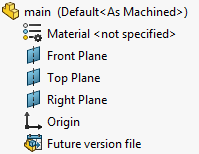 Dateien aus zukünftigen Versionen werden schreibgeschützt angezeigt, wenn sie in der vorherigen Version geöffnet werden, und haben eine eingeschränkte Funktionalität. Der FeatureManager enthält eingeschränkte Daten.