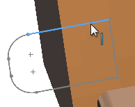 Skizzenkontur, die über eine Fläche überhängt. Wählen Sie die Kontur auf dem Bereich aus, der die Fläche nicht berührt.