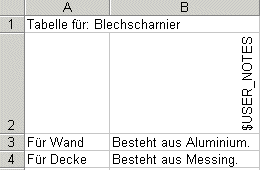 Verwenden Sie das Stichwort $USER_NOTES in der Kopfzeile jeder Spalte oder Reihe, die nicht ausgewertet werden soll. Sie können so viele solcher Reihen oder Spalten verwenden, wie Sie benötigen. In der Mitte der Tabelle dürfen sich jedoch keine Reihen oder Spalten mit leeren Kopfzeilen befinden.